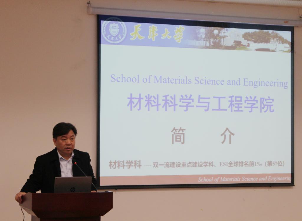 材料学院校友会会长、院长胡文彬为广大校友介绍了学院的发展现状。从学院系所和学科发展历史、目前专业和学科设置情况、师资队伍和人才储备、特色教学改革方案、国际交流与合作平台、新校区规划和建设情况六个方面一一道来。畅想了建设一流学科建设的愿景。