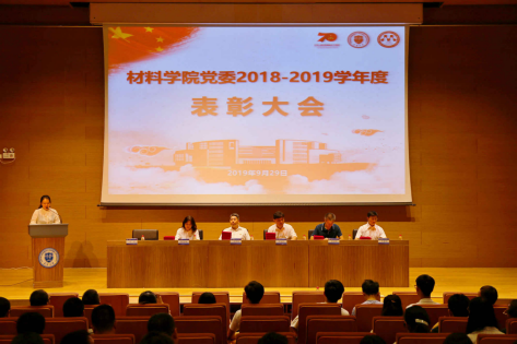 2019年是中华人民共和国成立70周年,也是决胜全面建成小康社会第一个百年奋斗目标的关键之年,为弘扬党的优良传统,进一步增强党员意识、发挥党员作用,进一步强化党组织的凝聚力和战斗力,9月29日,天津大学材料学院党委2018-2019学年度表彰大会在北洋园校区郑东图书馆南区报告厅隆重召开。院党委书记刘秀国,院长胡文彬,副院长耿延候,副院长、院党委委员韩曼瑜,院党委委员季惠明出席了此次大会,来自学院师生党支部的300余名党员参加了大会,表彰大会由院党委副书记王莹主持。