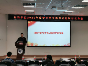 会议最后,材料学院党委书记尚宇光总结点评并带来《高校学生党支部的主要职责》专题党课。他首先对各党支部书记的工作表示了认可,也对各支部能够结合中心工作创新性开展工作表示了肯定。然后他结合高校学生党支部的职责定位,指出了目前与基层党支部建设要求仍存在一定差距,并就下一步党支部基层组织建设和作用发挥指明了改进方向。最后他强调各党支部要坚持问题导向,履行好高校学生党支部的职责,并提出三点要求,一是要提高政治站位,严格落实中央及校院重要部署,对标对表,夯实党支部建设基础。二是要针对支部存在问题切实去想出行之有效的应对措施,促进基层组织建设全面提升,全面过硬。三是要不断加强学习,创新学习形式,营造积极向上的学习氛围,支部书记和支部委员要带头学习,常学常新,提升学习效果。