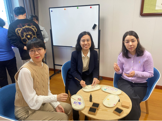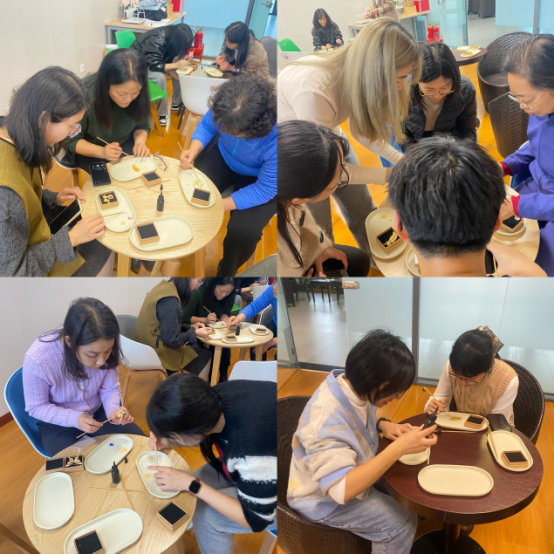 老师们感受着螺钿成品的静谧,仿佛倾听它们诉说着岁月未逝,诠释着非遗传承人“择一事做一生”的执着。器识为先,崇德明理,五育创新并举;文艺其从,启智润心,一生向美而行。螺钿之美,美在时光流转,美在匠心独运,美在文化传承。美是时代的召唤,向美而行,大家在自然之美、文化之美、生命之美中丰富思想、汲取力量,矢志追求更有高度、更有境界、更有品位的人生。不待秋风慢,我即以明月宴群山。此次活动不仅丰富了教职工的业余文化生活,也增进了教职工之间的交流和沟通。大家在活动中感受到了手工制作的乐趣,同时也提升了美学鉴赏力,将以更饱满的精神状态投入到工作和生活中。