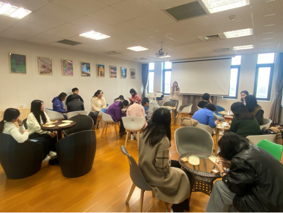 螺钿镶嵌工艺起源于我国商代,是中国特有的传统艺术瑰宝。螺钿,螺是指螺壳与海贝,钿为镶嵌装饰之意。螺钿工艺是指用螺壳与海贝打磨成薄片,根据图案需要而镶嵌在器物表面,外表流光溢彩,具有十分强烈的视觉效果,是中国特有的传统艺术瑰宝。在欢快的气氛中,老师们开始了螺钿之旅。慢工出细活,大家先挑选了自己喜欢的胸针素胚和螺钿颗粒,接着将螺钿颗粒碾碎,充分发挥自己的创意想法搭配色彩,用填料笔耐心地将螺钿碎用胶水粘在胸针素胚上,填满后再涂上一层光油,反复蘸油,贴贝壳碎片,把空缺填满,最后在胸针表面涂上UV胶并放在紫外线固化灯下烤几分钟,轻拾彩贝溢流光,一枚枚栩栩如生、色彩斑斓、绚丽奇幻的螺钿胸针便呼之欲出了,海洋与匠心交响的独特色泽与肌理,彰显出中华美学的悠悠风韵,承载着时光流转的迢迢雅逸,在细碎镶嵌之间体会到传统非遗文化的魅力。