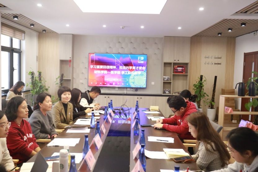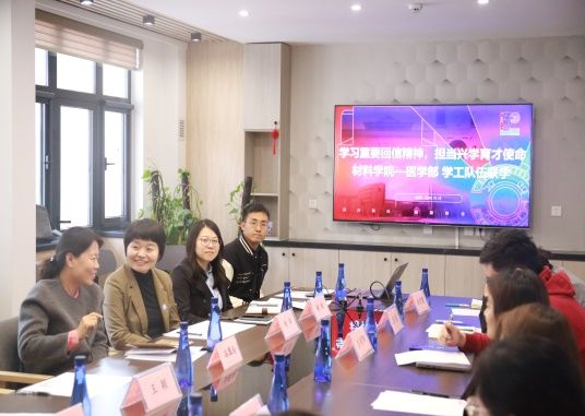 10月16日,天津大学材料科学与工程学院与医学部学工队伍于卫津路一站式学生社区鹏翔4斋党员活动室开展“学习重要回信精神,担当兴学育才使命”联学活动。天津大学首席辅导员冯翠玲,材料学院党委副书记王颖,医学部医学院党委副书记朱华、药学院党委副书记李楠、生命学院党委副书记尚洁、卫生应急学院党委副书记周艳,以及五个学院的学生工作队伍参会。