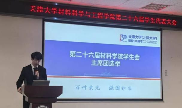 2025年10月10日下午15:30,天津大学材料科学与工程学院(以下简称材料学院)第二十六届学生代表大会于北洋园校区31楼2106教室顺利召开。