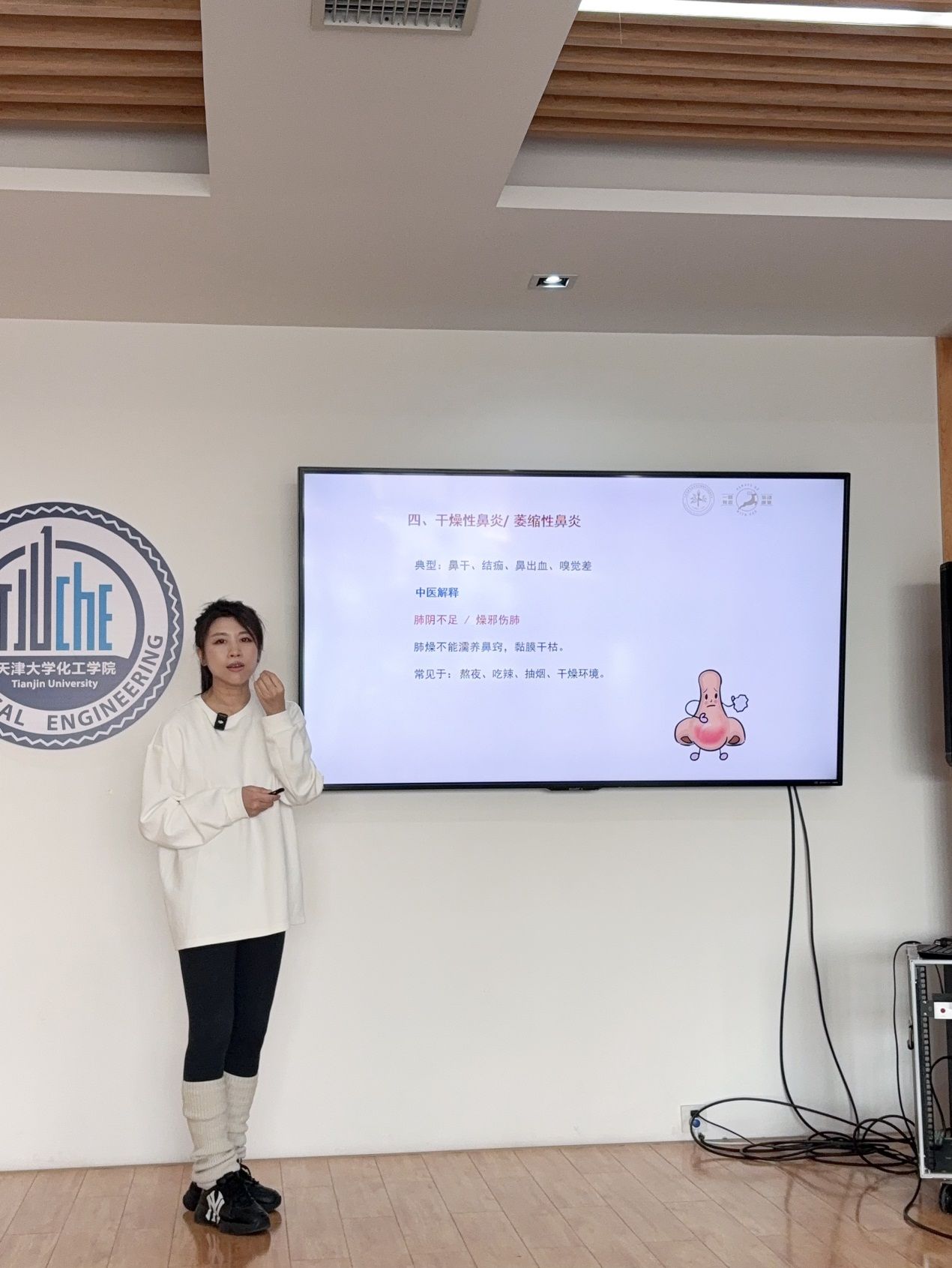 李教练结合多年运动康复与中医养生经验,深入浅出地讲解了过敏性鼻炎的中医辨证分型、常见诱因及日常调理方法,并结合现代脑科学与原始反射理论,分析了鼻炎与神经系统、情绪状态的关联,讲座内容涵盖过敏性鼻炎、慢性鼻炎、鼻窦炎等多种类型的中医解释,介绍了简捷实用的穴位按摩、呼吸训练及运动调理方法,帮助教职工从根源上理解鼻炎、科学应对鼻炎。现场互动热烈,大家纷纷表示受益匪浅。