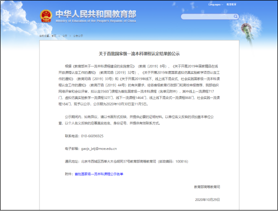 Recently, the Ministry of Education announced the first batch of national first-class undergraduate courses (national "golden courses"), of which the "Material Analysis Method" was selected as the first batch of offline first-class courses, taught by Teacher Feng Hou of the School of Materials Science and Engineering. It is reported that 11 online, 14 offline courses and 4 online and offline hybrid courses have been selected as first-class courses, as well as 7 in virtual simulation experiment teaching, 1 social practice course, a total of 37 courses in Tianjin University.