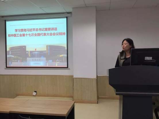 2019年11月1日上午,材料学院副院长、工会主席韩曼瑜同志为行政党支部及各系所工会委员小组长,开展了以“学习贯彻习近平总书记重要讲话精神做好新时代基层工会暖心工作”为题的专题党课。