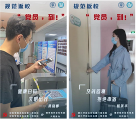 学院在首批返校复学学生中设立了楼门值守示范岗、宿舍楼门值守示范岗、力行工程互查打分示范岗的“党员先锋岗”,组织返校学生党支部“整建制”、“承包式”参与“学生党员先锋岗”,引导学生党员增强为人民服务的宗旨意识,在实践中践行党员的初心和使命,为巩固校园防疫工作贡献一份力量。在31楼门口、宿舍执勤点,学生党员们主动亮明身份,佩戴党徽、小红帽、党员先锋岗胸牌上岗,同物业工作人员、辅导员一起检查宿舍卫生,组织师生们入门扫码、测温、消毒,提醒戴口罩。“学生党员先锋岗”成员董炜佳表示,作为一名毕业生党员,能够参加此次党员先锋岗感到十分荣幸,在工作过程中也深刻体会到学校防疫工作的严格与工作人员的辛苦,在学院楼门口扫码、测温的工作并不复杂,但高峰时段人流量过多给防疫工作带来了一些挑战,能为巩固学校的防疫成果奉献自己的一份力量,感到非常开心和自豪。