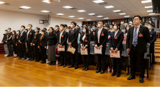 随后,主持人王明阳宣布大会正式会议开幕,全体与会代表起立,高唱国歌。