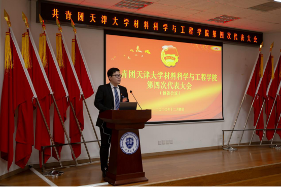 共青团天津大学材料科学与工程学院第四次代表大会预备会议上,全体与会代表审议通过了《代表资格审查报告(草案)》、《大会主席团名单(草案)》、《大会秘书长名单(草案)》和《大会议程(草案)》。