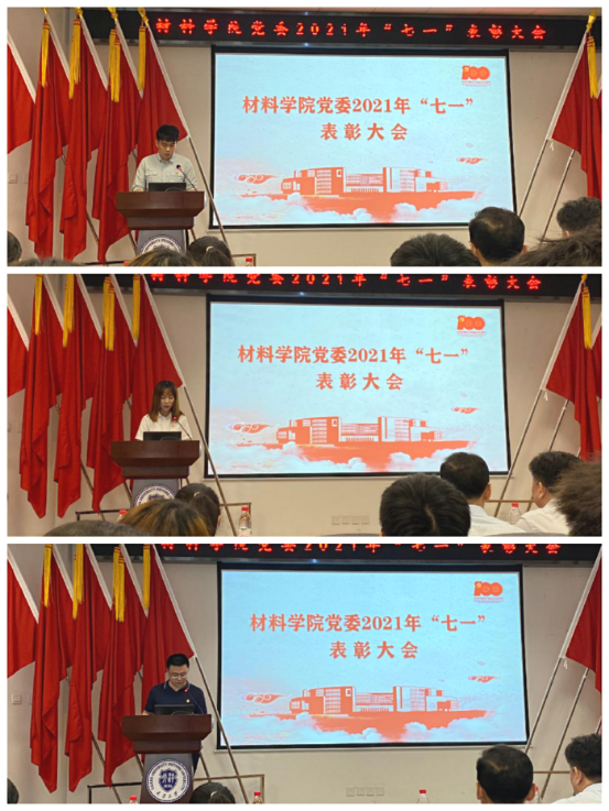 表彰大会在雄壮的国歌声中拉开了帷幕。随后,院党委书记尚宇光同志宣读了《中共天津大学材料科学与工程学院委员会关于表彰优秀共产党员、优秀党务工作者和先进党支部的决定》,勉励全院师生党员以受表彰的先进典型为榜样,切实增强“四个意识”,坚定“四个自信”、做到“两个维护”,深入开展党史学习教育,坚定理想信念,践行初心宗旨,立足本职扎实工作,为学院发展做出更大的贡献。