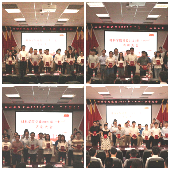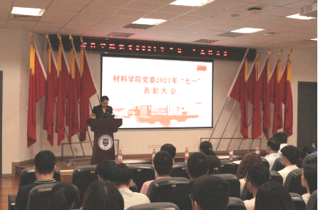 为庆祝中国共产党成立100周年,表彰优秀、树立典型,进一步激发我院基层党组织和党员干部活力,6月29日下午,材料学院党委在北洋园校区31号楼2106会议室隆重召开了2021年“七一”表彰大会,表彰2020-2021年度先进党支部和优秀党员。院党委书记尚宇光,院长胡文彬,副院长王东坡、何春年等院党委委员以及教工和学生党员代表共计80余人出席了此次大会,表彰大会由院党委副书记王莹主持。