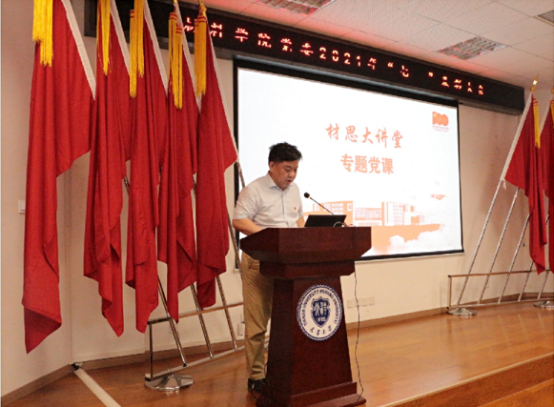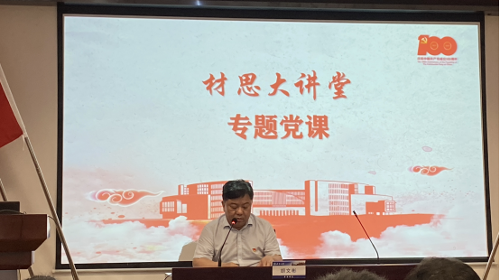 表彰结束后,胡文彬同志为在场师生党员开展了题目为《为中华之崛起而读书》专题党课。他结合自身多年求学经历,以真实的事件为例,带领师生党员回顾了党团结带领人民从站起来、富起来到强起来的伟大历史飞跃,中国共产党紧紧团结和依靠人民,战胜无数艰难险阻,夺取了革命、建设、改革一个又一个伟大胜利,创造了中华民族发展史、世界社会主义发展史、人类社会发展史上的辉煌成就。最后胡文彬同志劝勉在场师生发挥党员先锋模范作用,树立远大理想抱负,聚焦科研重点难点,把握发力方向,不负韶华,争取为党和国家做出更多贡献。