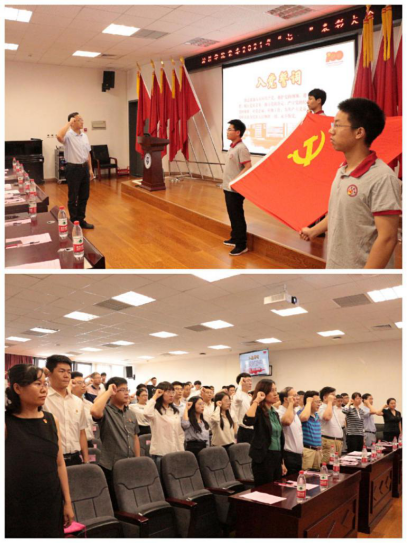 随后,与会党员重温入党誓词。全体起立,神情庄重,动作整齐,面向党旗肃立。“我志愿加入中国共产党,拥护党的纲领,遵守党的章程……”在院党委书记尚宇光的带领下,大家郑重举起右拳,高声宣读入党誓词,宣誓铿锵响彻会场。虽然入党誓词只有短短不到100字,但字字千钧,大家通过重温入党誓词再一次接受了心灵的洗礼与党性的锤炼。