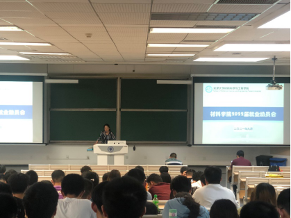 动员会上,研究生辅导员王明阳首先调查了在场学生毕业后的基本意向情况,展示材料学院2016-2020届毕业生就业质量报告,介绍包括毕业生签约单位性质、毕业生就业地域分析、毕业生主要签约单位、就业政策及就业流程,就业、保研、出国的相关信息填写和毕业生档案去向等,对就业相关政策进行了重要的解读。从公务员、中央选调生、选调生、定向选调生等方面鼓励学生去党政机关和基层单位就业;建议将来想从事与材料相关工作的同学读研后再就业;对决定毕业后直接就业的同学,王明阳老师建议挑选就业单位时结合政策和未来发展综合考虑,鼓励到“三重”单位发展:国防军工、大型央企及前沿研究领域,党政机关等公共管理服务部门,国际组织,并介绍了何立刚、王成刚等党政机关优秀校友代表。最后,倡导毕业生慎重签约、诚信履约、反对违约,展现天大人的诚信精神。