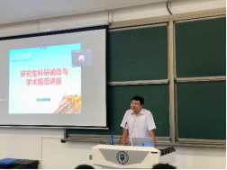 院长助理马哲老师开展研究生学术规范讲座,鼓舞研究生新生们坚守初心,实事求是、严谨治学,秉承“不唯上只唯实”的科学态度,在科研之路上有规矩、懂自律,在求真求实的学术之路上越走越远。
