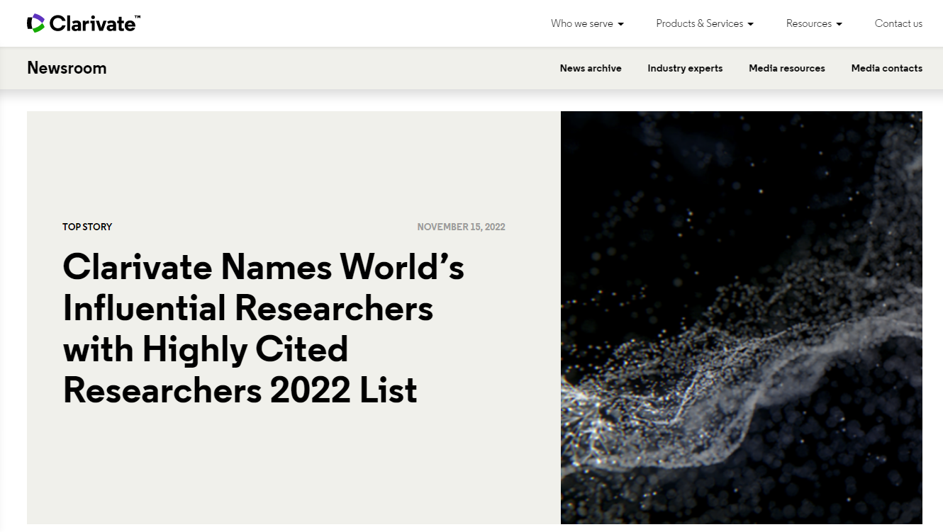 科睿唯安全球“高被引科学家”名单数据来源于科睿唯安Web of Science数据库。入选该榜单的科学家均发表了多篇高被引论文,其被引频次位于同学科前1%,彰显了他们在全球同行之中的重要学术影响力。