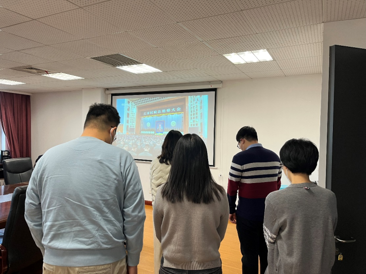 12月6日上午10时,党中央、全国人大常委会、国务院、全国政协、中央军委在北京人民大会堂隆重举行江泽民同志追悼大会,材料学院组织教师在31楼310集中观看,大家怀着无比沉痛的心情,垂首肃立,深切缅怀江泽民同志的卓越功勋,深刻感悟江泽民同志的精神风范。其他师生以多种形式收看。