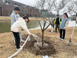 桃源只在镜湖中,影落清波十里红。44教河道南侧,材料学院2022级硕士生金属团支部的团员青年们亲手种植“桃花堤”,共赴春天的约会。材子植树添新绿,不负春光正当时。同学们迎着春风、沐着暖阳,积极参加到种桃花的活动中来,大家分工明确、互相协作,有的挥锹培土,有的扶苗浇水,种下属于北洋园、桃花堤、材料人的春天与新绿,引得芬芳满校园。