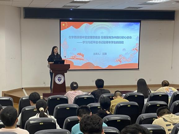 她带领各位学员一起重温了十年来习近平总书记给青年的十封回信,在一封封信件里,不论是支援西部、参军入伍、创新创业、社会实践,还是青年党员宣传党的理论知识,高校学子服务乡村振兴、将专业所学与国家所需相结合等内容,都展现了当代青年昂扬向上、奋发有为的风貌和服务社会、报效国家的情怀。王颖老师勉励大家,让“同学们要发扬‘自找苦吃’的精神,踔厉奋发、勇毅前行,用青春书写无愧于时代、无愧于历史的华彩篇章!”