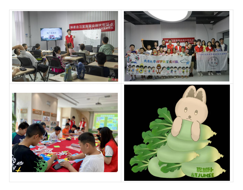 “材梦扶贫”与基层社区密切联系,推进“神兽自习室”、“小青团自习室”志愿服务项目,开展红色宣讲、科普实验、课后辅导以及各类特色活动,促进教育事业的发展,助梦下一代青年的思想扬帆。与葛沽镇推出联名文创周边,助力乡村振兴文化产业创新推广。在社会观察、调查研究、志愿服务中了解国情社情民情、体会科技创新变革、推动文化繁荣创新,坚定以发展强底气,创造无愧时代的新业绩。
