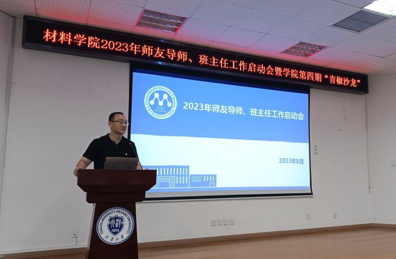 聚焦学生成长,共话发展未来。8月29日下午,材料学院2023年师友导师、班主任工作启动会在31教2106会议室召开,旨在进一步强化教师对学生培养、教育情况的认知,为高质量展开材料学院2023年师友导师工作奠定坚实基础。材料学院党委书记尚宇光、副书记王颖、副院长王颖、孙晓红及学院30余位师友导师、班主任、教务员与辅导员参加此次会议。心理健康教育中心常务副主任安莉受邀参加此次会议,工作启动会由学院学工办主任、团委书记王明阳主持。