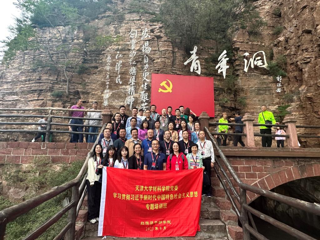 (通讯员谭雨晴刘子铭)为深入学习贯彻党的二十大精神,领会中国共产党人精神谱系伟大精神之一的红旗渠精神,加强党员思想建设,传承红色基因,9月22日至24日,天津大学材料学院党委带领党员干部、教师党员和学生党员代表一行人赴林州红旗渠红色教育基地,通过专题讲座、现场教学、情景教学、体验教学、访谈教学等多种形式深入学习红旗渠精神,沉浸式学习领悟“自力更生、艰苦创业、团结协作、无私奉献”的红旗渠精神内涵。