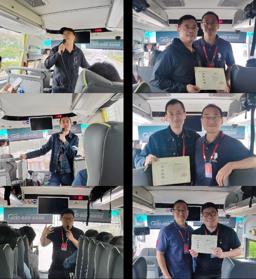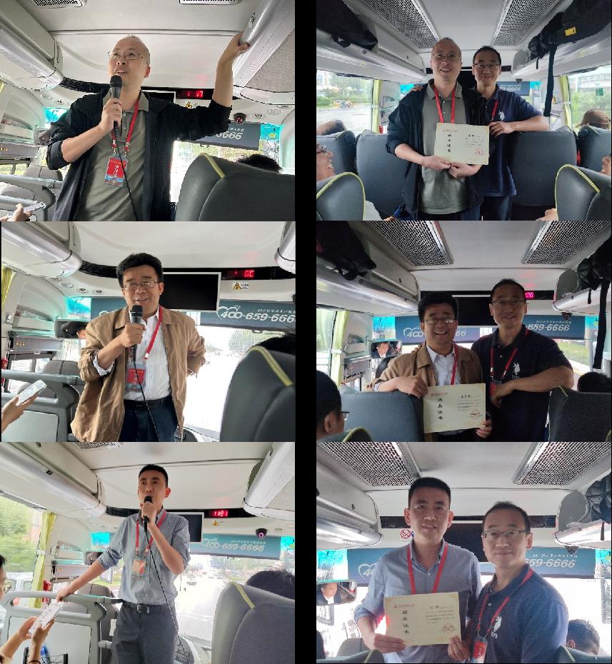 大巴车上,材料学院工会和团委组织开展趣味知识竞答活动,题目涉及源远流长的中华民族传统文化、百花齐放的中外文学、普罗大众的文化常识、自立自强的科学技术等内容。现场氛围极好,教师们热情高涨,纷纷抢答,展示着渊博的知识量。
