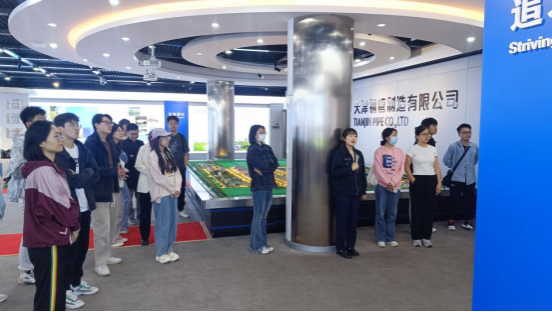 首先,师生一行走进天津钢管的展厅,实地了解到公司的发展历程、产业构成和产品应用等内容。随后,师生来到三轧管分厂460样板车间进行参观,不但感受了企业真实的生产环境,还了解了无缝钢管的生产工序和技术特点,同学们表现出浓厚的兴趣,并与现场工程师进行了充分的交流。