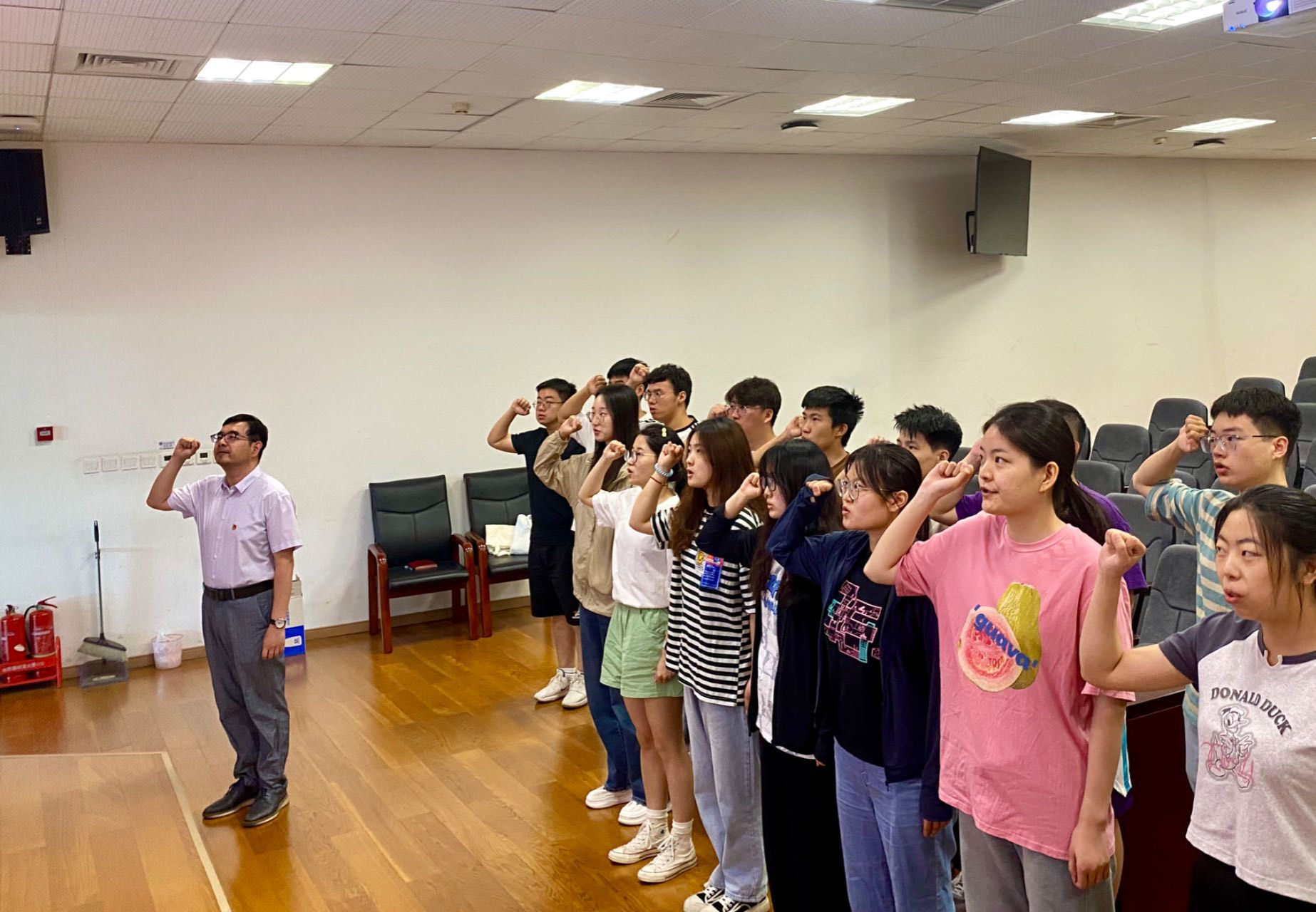 会议最后举行新发展党员集中宣誓仪式,刘一带领2024年上半年新发展党员面向党旗庄严宣誓。
