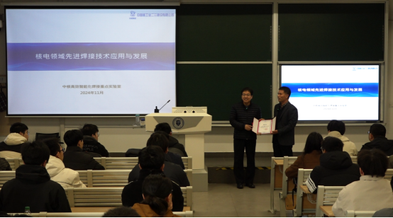 11月23日,中国核工业二三建设有限公司设计公司的总工程师,研究员级高级工程师冯英超为学生们带来了主题为“核电领域先进焊接技术应用与发展”的精彩演讲。冯总工以其丰富的核电领域焊接工艺及配套装备开发经验,他从全球核安全与核电发展态势出发,深入介绍了先进自动焊技术在核电建设中的应用,以及核电焊接关键装备的自主化研发成果。特别是物联网焊接系统的介绍,展示了我国核电焊接全面数字化的最新进展。