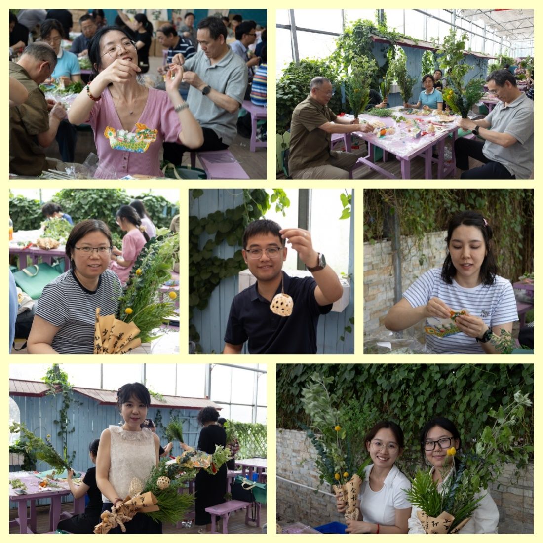 艾草花束作为端午节的重要象征之一,不仅承载着驱邪避疫、祈福纳祥的文化寓意,还体现了人们对健康与平安的美好祝愿。在端午节这个中华民族重要的传统节日到来之际,三个学院的教师们,在专业手工指导老师的带领下共同体验了艾草花束的制作流程。老师们跟随者手工制作师的讲解与指导,亲手将自己最真诚的祝福与艾草、干花、香囊、手作龙舟和祝福卡片一起编织在花束上。在制作过程中,老师们一边发挥着自己的审美创造力,一边将自己对家人、对生活、对学院学校的美好祝福融入到一束束艾草花中,大家也在制作中增进了彼此的交流与友谊。