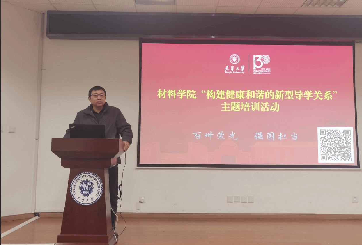 构建健康和谐的新型导学关系,是落实立德树人根本任务、提升研究生培养质量的重要保障。为进一步加强研究生导师队伍建设,切实提升研究生导师育人能力和水平,保障研究生人才培养质量,材料学院于12月25日下午精心组织开展“构建健康和谐的新型导学关系”主题培训活动。该活动由副院长马哲主持,面向学院全体研究生导师开展,培训内容涵盖国家级教学名师赵乃勤主讲的导学关系经验分享、研究生招生办公室主任卢铮松主讲的研究生招生政策宣讲、研究生奖助学金评定及学位管理等政策宣讲。